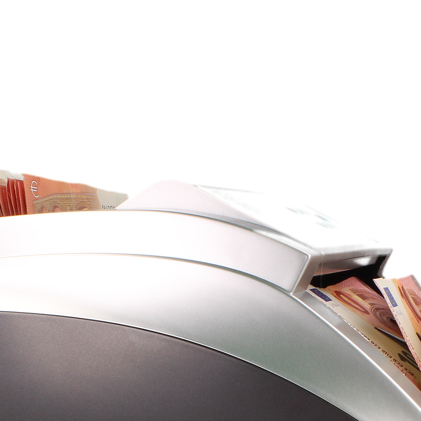 A C105 verifica automaticamente as suas notas para que não aceite falsificações sem valor. Se for detectada uma nota falsa, a C105 pausa automaticamente a contagem e alerta-o com um aviso visual e sonoro. Simplesmente remova a nota suspeita e pressione a tecla "INICIAR" para recomeçar a contagem.