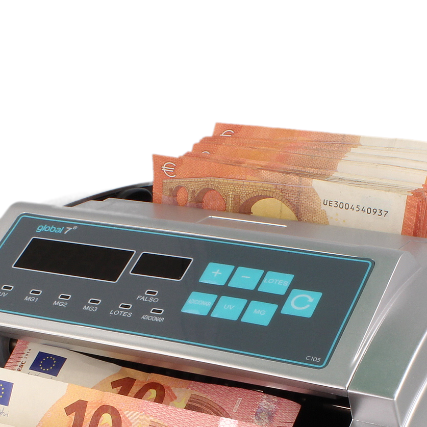 A maquina C105 de contar notas foi desenvolvida com tecnologia digital, permitindo contar com máxima precisão e ao mesmo tempo realizar a deteção de notas falsas.